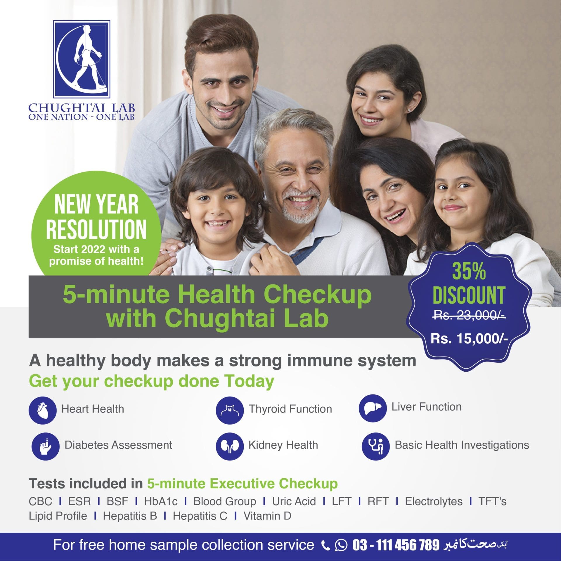 At Chughtai Healthcare, we are committed to delivering trusted, high-quality, and patient-centric healthcare services across Pakistan. With a strong foundation built on innovation, reliability, and excellence, we continuously enhance our service delivery, technology, and patient care to ensure the best healthcare experience. Our nationwide presence, dedicated teams, and cutting-edge facilities make us a leader in diagnostics and medical services. From home sampling convenience to community health education, we go beyond testing to create a healthier future for all. Your health is our priority, and your trust is our success.
