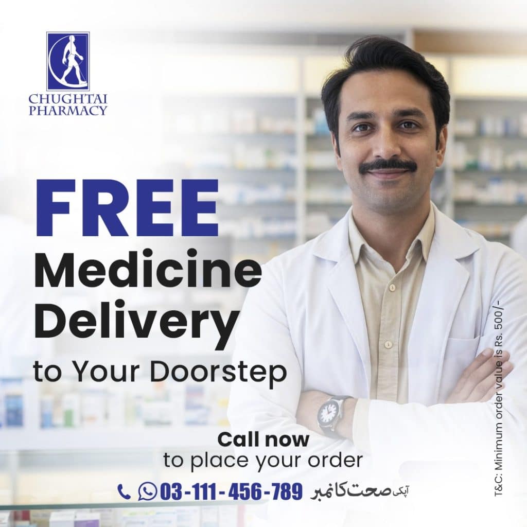 Chughtai Pharmacy offers a fast and reliable online medicine delivery service throughout Lahore, including free medicine delivery in Lahore for eligible orders.